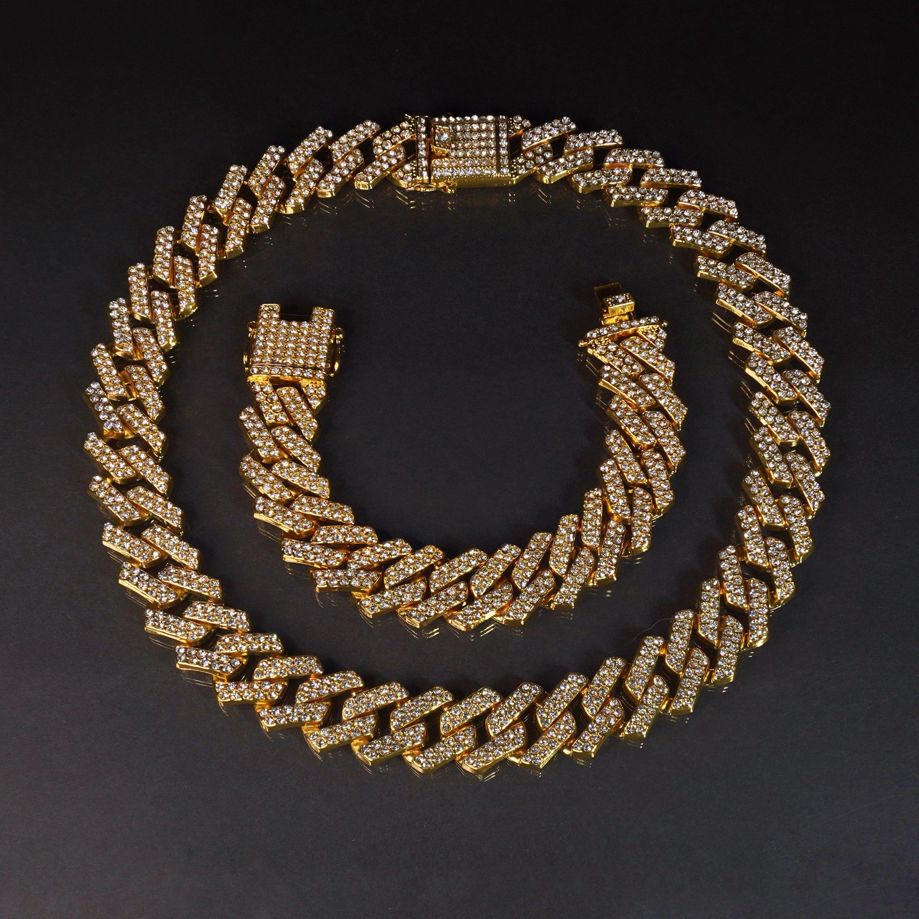 20mm Prong Set Cuban Link Chain & Bracelet Stack