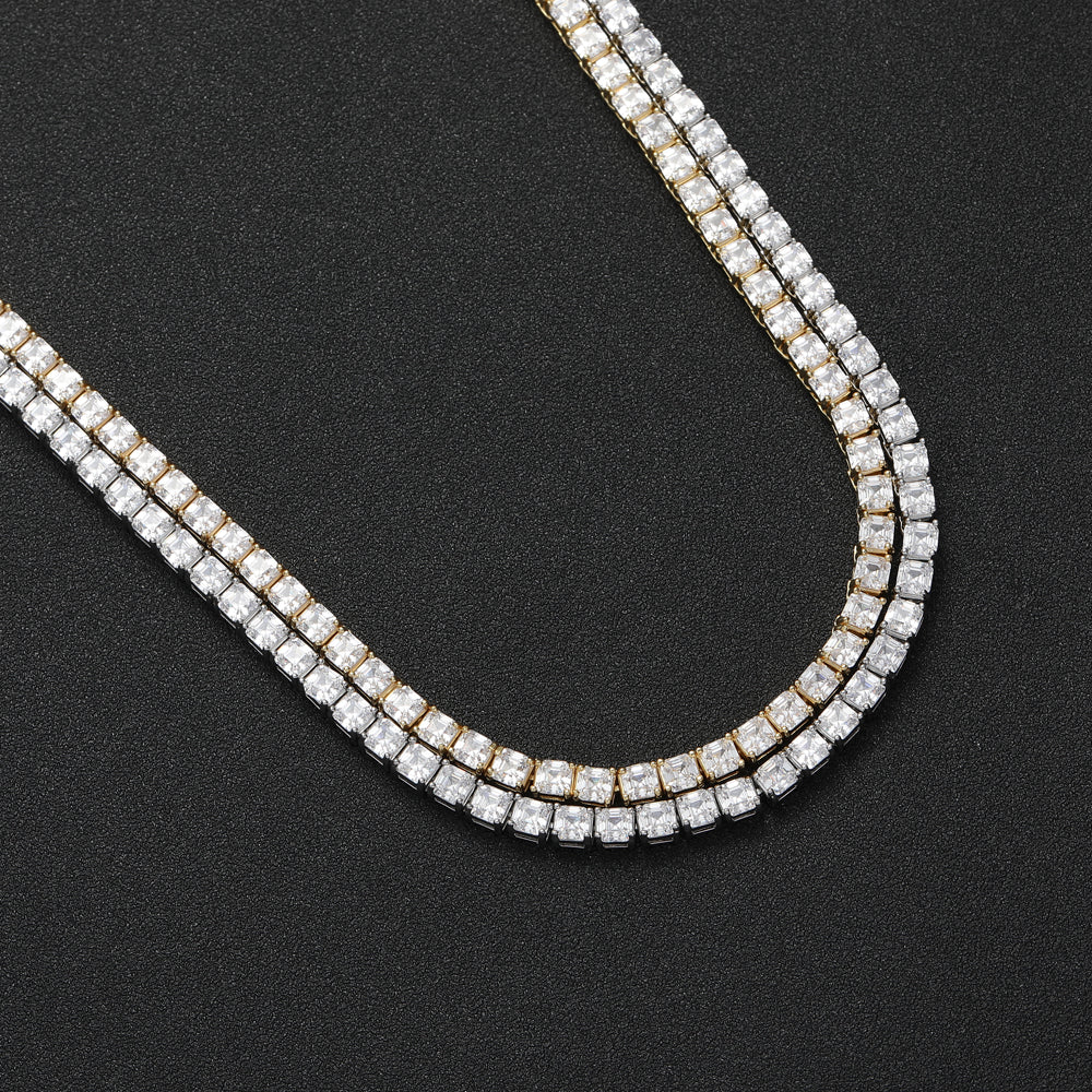 The 4mm Tennis Chain brings real weight to your neck — bold, clean, and iced front to back. Each stone is hand-set to sit perfectly in place, catching light with every move you make.